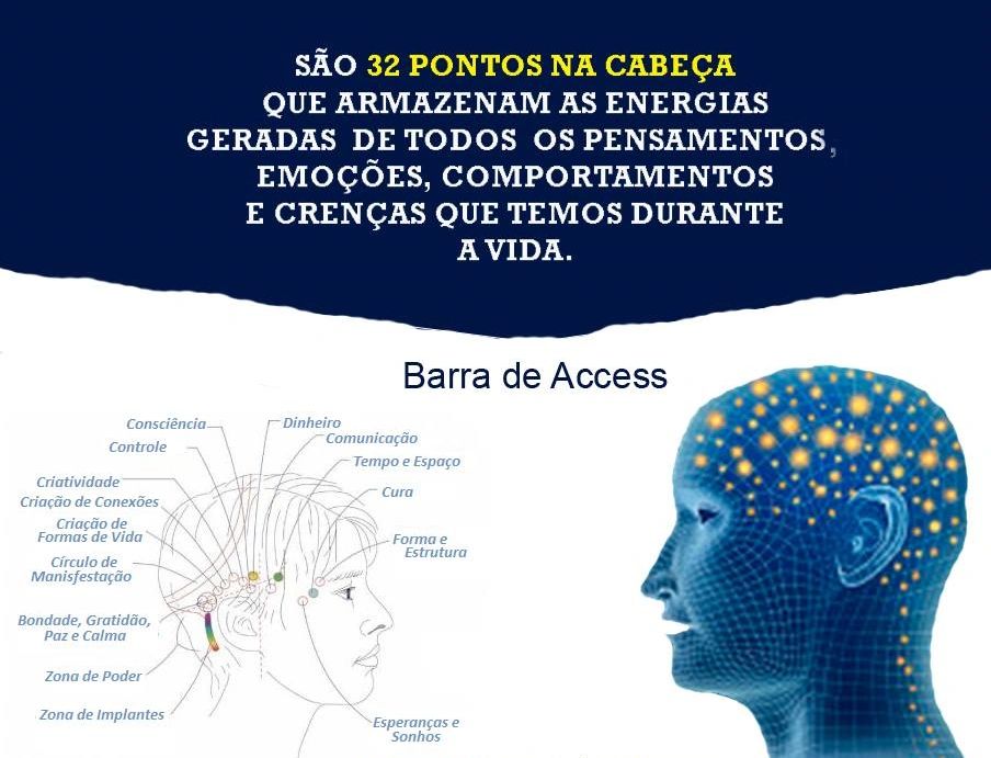As Barras de Access® são 32 pontos localizados na cabeça que quando tocados de forma suave, desbloqueiam a energia estagnada, eliminando os registos de crenças limitantes, sentimentos, pensamentos negativos e de emoções que acumulamos durante a vida.